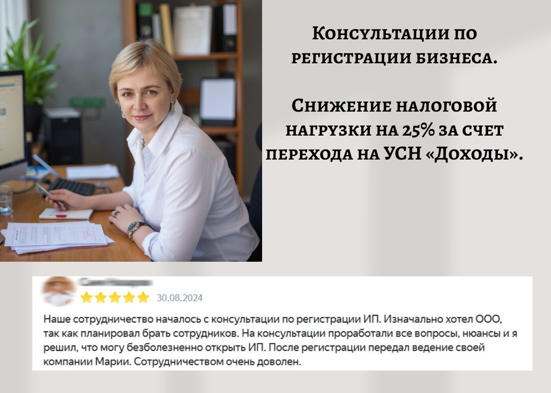 Обратилась в компанию "Деловое мышление" для составления декларации по УСН за 2024 г. Учет вела весь год сама, но для сдачи декларации решила обратиться к бухгалтеру. Выбирала бухгалтера на Авито, для меня было важно, чтоб у бухгалтера был опыт ведения ИП, А также офис, возможность подъехать и припарковаться на личном авто. Позвонила по телефону, договорились с Марией о встрече. Приехала, рассказала о своих переживаниях по поводу сдачи декларации. Мария все объяснила, сказала, какие документы предоставить для составления отчета. Что немало важно мне сразу в момент оплаты выдали чек! Хотя я платила наличными. Год закрыт, декларация сдана, вопросов от налоговой нет.